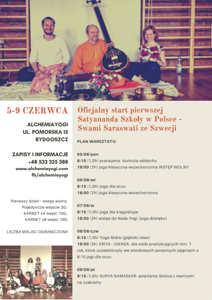 Oficjalny start pierwszej Szkoły w Polsce Satyananda, Bydgoszcz 2017